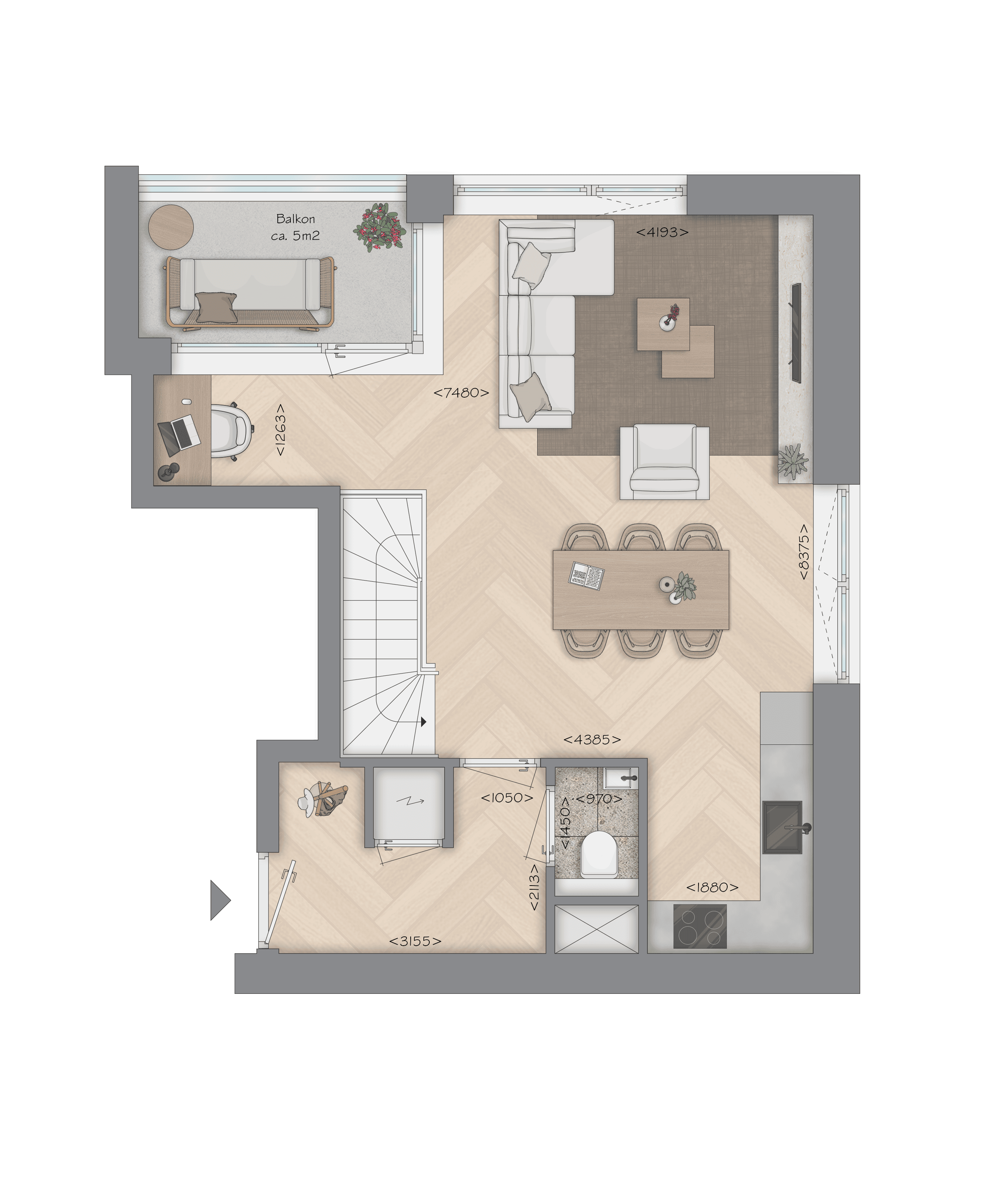 Onze stadswoningen combineren centrale ligging met slim wooncomfort. Met circa 87–126 m² heb je de ruimte om te leven, werken en ontspannen. Je komt binnen op de woonetage met een lichte woonkamer en open (hoek)keuken; via de schuifdeur stap je de loggia of het balkon op (vaak gericht op het zuidoosten of zuidwesten). Een etage lager liggen 2 of 3 slaapkamers en een complete badkamer met tweede toilet—overzichtelijk en comfortabel. Hoekwoningen profiteren van extra daglicht; sommige typen bieden zelfs een extra balkon aan de slaapkamer. Ideaal voor starters, kleine gezinnen en thuiswerkers die graag ruim en centraal wonen.