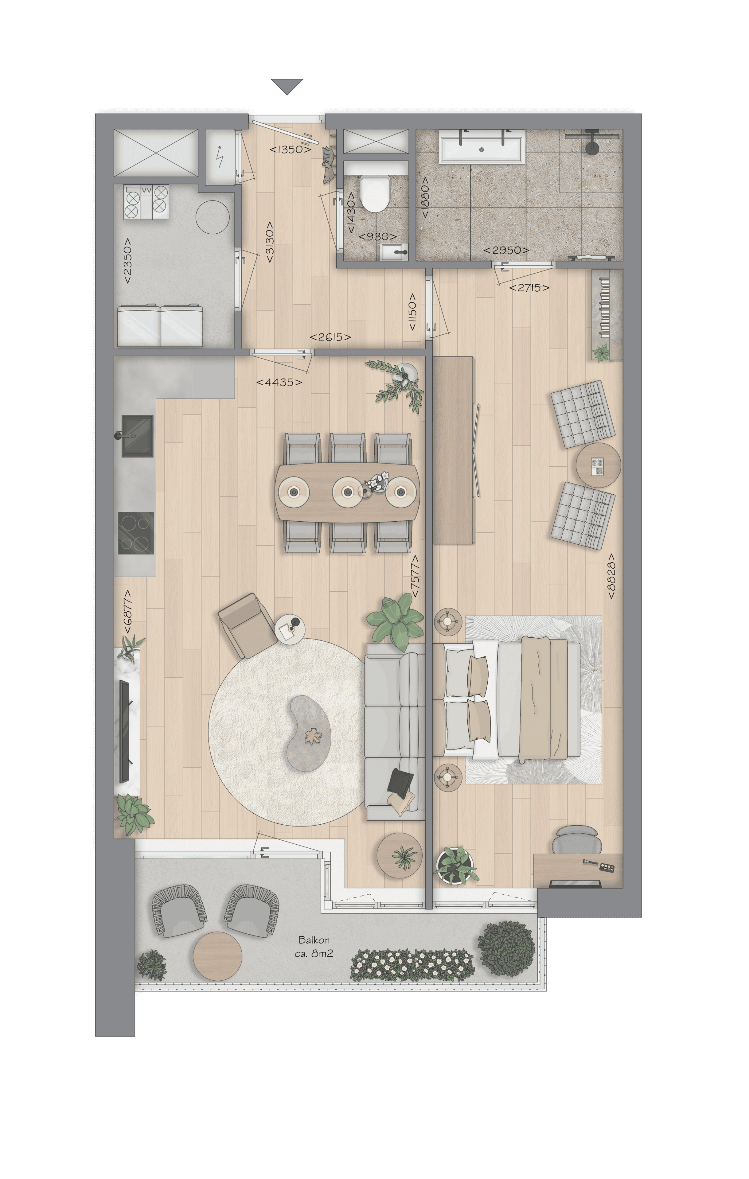 Geen extra slaapkamers nodig, wél de ruimte. De 2-kamerappartementen combineren een slim ingedeelde leefruimte met één royale slaapkamer—in sommige typen zelfs met inloopkast. De lichte woonkamer sluit aan op een balkon of terras, vaak ook bereikbaar vanuit de slaapkamer. Ochtendzon of juist middag/avondzon: je hebt altijd een plek om buiten te zitten. Met circa 66–82 m² woonoppervlak woon je gelijkvloers, comfortabel en ontspannen—compact in meters, groot in gevoel.